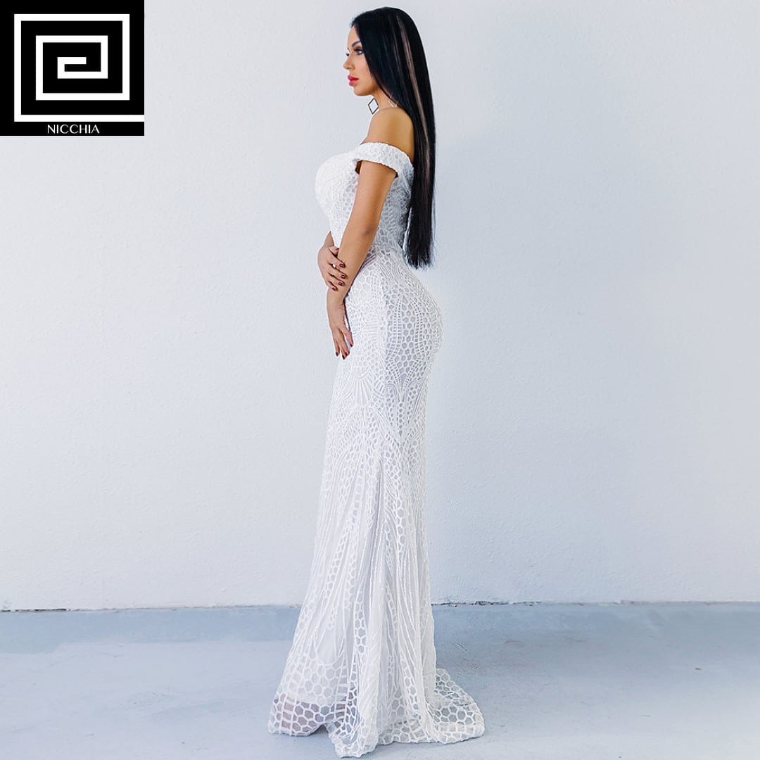 スパンコールオフショルダードレス